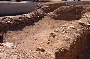 Sometimes archaeologists find a surprise — in this case a room showing their sophistication with observing the heavens. Note in the picture to the left are two doorways — one is behind the bump in the wall the other is clearly visible. These are aligned so that at sunrise on the summer solstice, the sun shines through the door on the left, across the room and to the door on the right. Similarly, at sunset on the winter solstice light entering through the right door graces the door opening on the left. Obviously, this information was valuable for knowing when to plant and when to harvest.