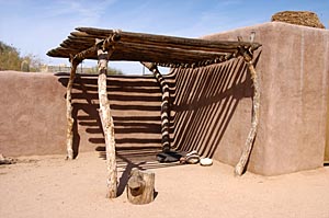 In addition to the ruins, the city has built several reconstructions of what these adobe homes would have been like. They include walls to protect from the wind, shade to protect from the sun, pots, fire pits, looms, gourds (for storing water), manos & metates (for grinding corn), etc. Different instances of these houses reflect changes in style over the centuries of habitation here.