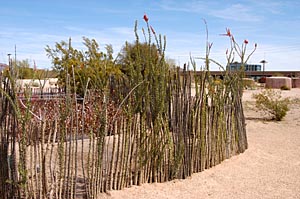 Some gardens were protected from pests by surrounding them with thorny hedges made from Ocotillo, a desert-adapted woody plant that has no branches (just a single main stalk) and small leaves which are dropped during dry times. The Hohokam needed only to stick the twigs in the ground and Mother Nature would take over — rooting the plants and producing beautiful flowers to accompany the now-green hedges.