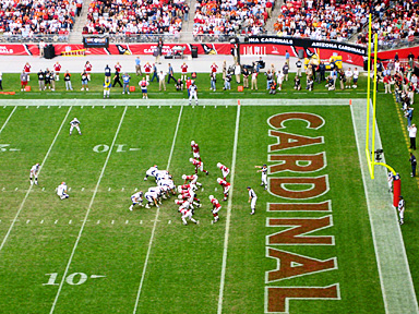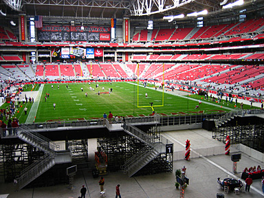 Back in August, I wrote about attending the Open House at the new Cardinals stadium in Glendale — and lamented that I had no idea when, if ever, I would be back. Well, Sunday I was back — as the guest of my friend and fellow HP retiree, Roger — to see the Cardinals play against the Denver Broncos.