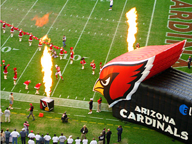 And the show must go on — huge flames erupted as each introduced player exited from the inflatable (and mean-looking) Cardinal head.