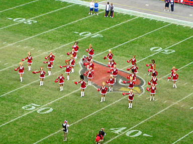 And cheerleaders. Ah, yes — the cheerleaders. One of whom is a trainer at Lifetime Fitness (where I work out). [An aside: Matt Leinart, the Cardinals rookie starting quarterback, is also a member and works out at Lifetime Fitness.]