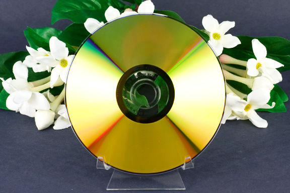 Before we leave the subject of Hawai`ian gold, here is another valuable form of it. In case you do not recognize this item, it is actually an archive quality DVD disc. In a previous issue, I mentioned that I was using these discs because they are supposed to retain the data longer than the silver color discs that you can buy at Fry's or other similar stores. It has taken a while but I have now completed burning three copies of each set of photos that I took while in Hawai`i — a total of more than 60 discs. But in the process I really began to notice the rainbow of colors when the light catches the disc just right — which I believe is the result of fine parallel rings forming a diffraction grating. And since rainbows are very common in Hawai`i, it seemed appropriate to share. |