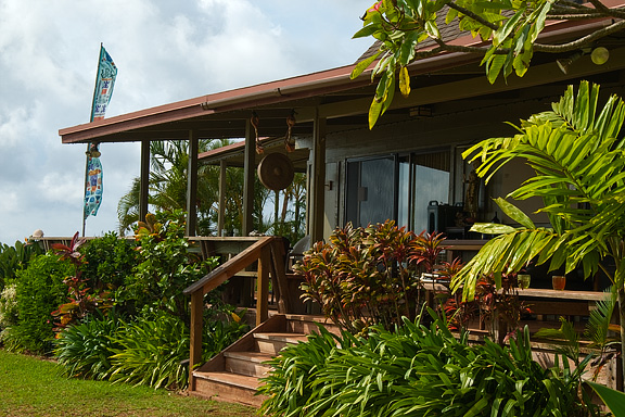 We met at Hui Ho`olana in the (what I would call) the upcountry area of Moloka`i. The Hui is a teaching and learning center striving to provide an environment for inspiration, a safe haven for the growth and nurturing of the creative spirit. The property has been in Richard Cooke's family for generations, was sold and later re-purchased then donated to the non-profit organization run by Richard (Rik or Rikky) and his wife Bronwyn. Rikky is a fine photographer in his own right and has published a book of photographs and text entitled Molokai: An Island in Time. I own a copy of his book never thinking that someday I would encounter the author/photographer. If I had known, I would have taken my copy with me to the Hui for him to sign. |