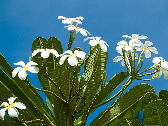 For those of you who have never smelled a plumeria blossom, you have not lived. To give you a hint — Heaven must smell like a plumeria blossom. So if you wake up sometime and smell that wonderful scent, either you're in Hawai`i or in Heaven. |