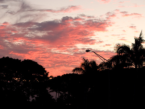 Since we were playing the twilight times (about half price and the only way to make the green fees almost reasonable), sundown came quickly after we finished. And this one was spectacular. What a wonderful visual treat after a great day of golf. |