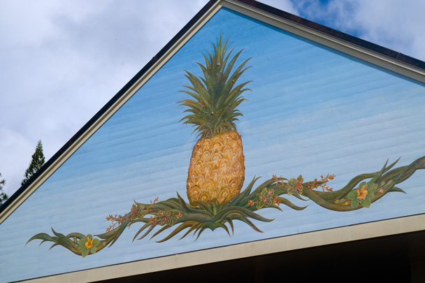 The front of Koele features a huge mural of a pineapple and greenery — obviously a tribute to the featured crop that plays such an important role in the island's history. |