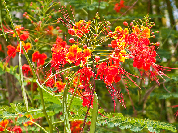 Competing in tropical splendor are the blossoms from the Royal Poinciana Tree. Bright red and tinged with yellow, they bring fire and passion to this landscape... |