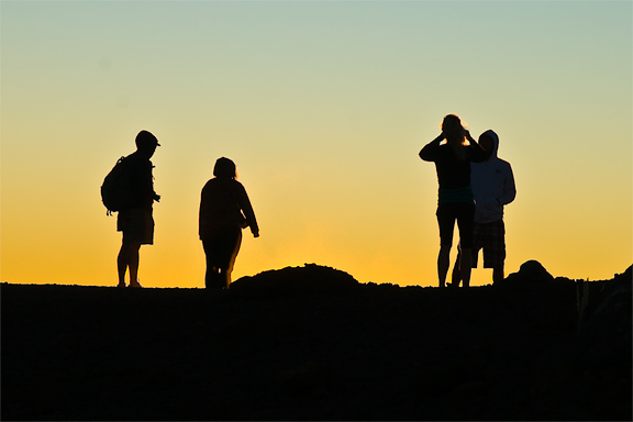 Here were a few brave souls also prepared to catch the sunset. Of course, all of us stupidly were dressed in shorts — when long johns should have been the order of the day. Yes, it was getting cold. And windy. |