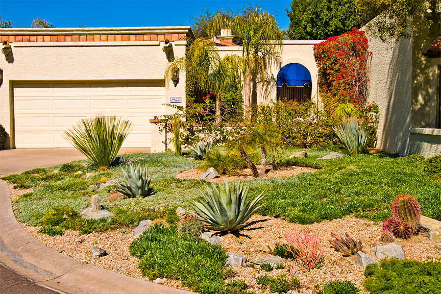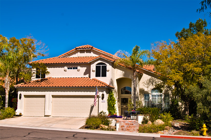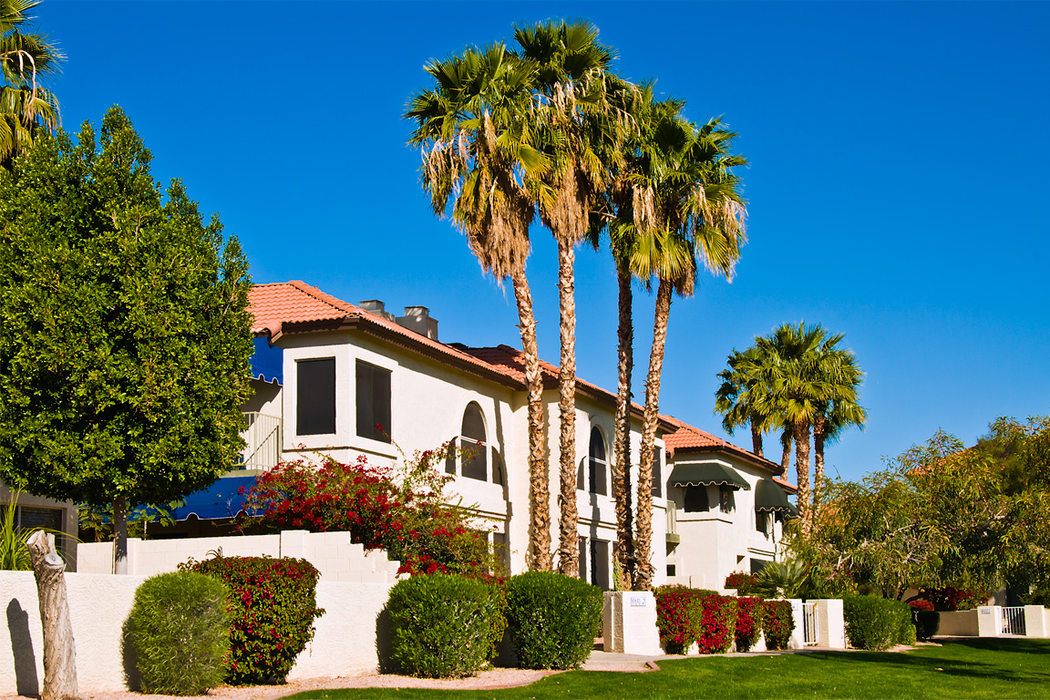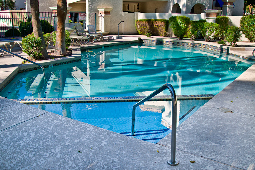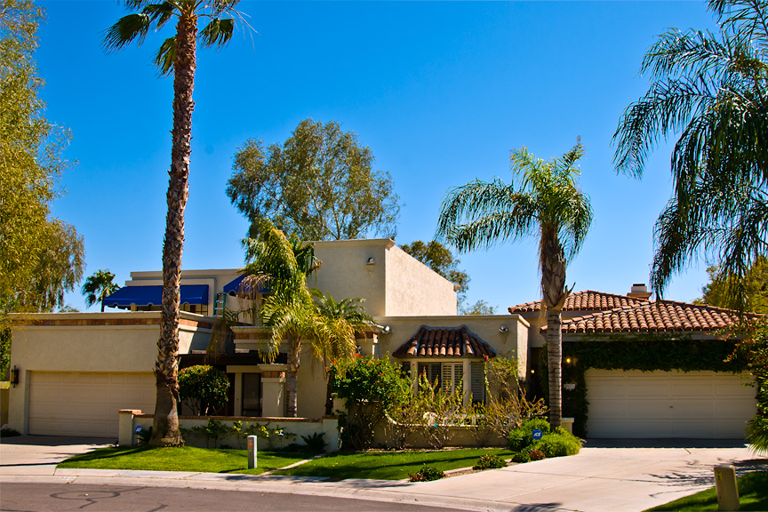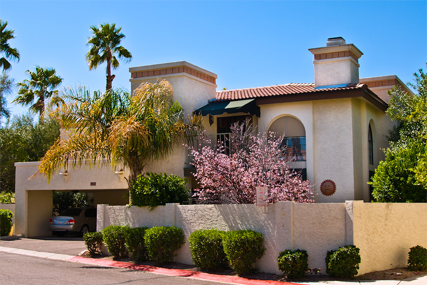 My home is in the residential area which includes single family homes, garden-attached homes (most folks call them duplexes) and courthomes (AKA townhouses). To the east of my courthome is the sixth hole of the golf course and beyond that are the Pointe Apartments — which is where I lived when I first moved to Phoenix until HP give me the go-ahead to stay permanently. |