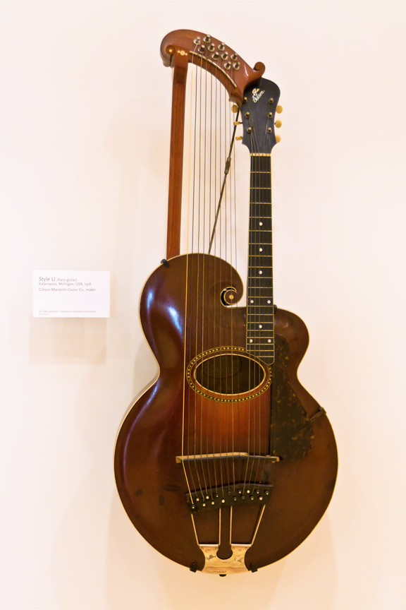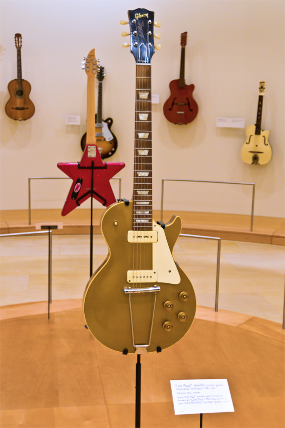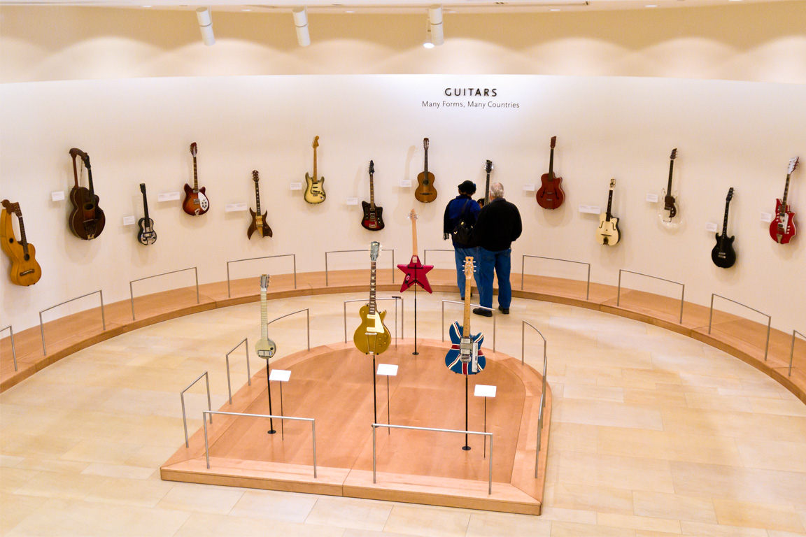 Nothing exemplifies modern American music quite like the guitar — thus the first real exhibit is "Guitars" with many different types on display.