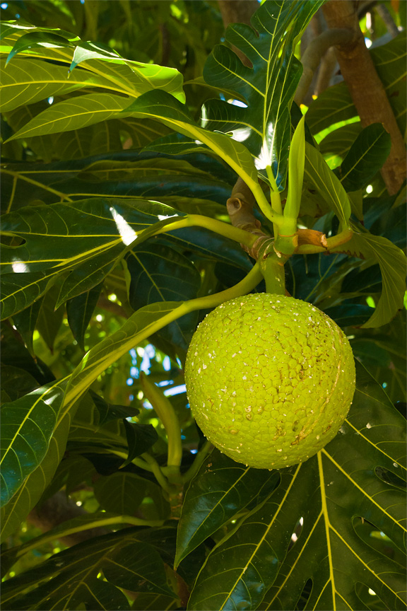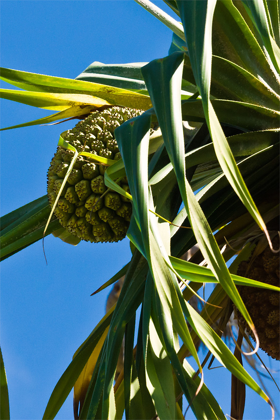 The fruit can be eaten raw or cooked — and was a major food item for the Hawai`ians. Interestingly, the fruit is so full of fiber, it functions as a natural dental floss. The leaves found many uses such as baskets, mats, canoe sails, thatch roofs and grass skirts. |