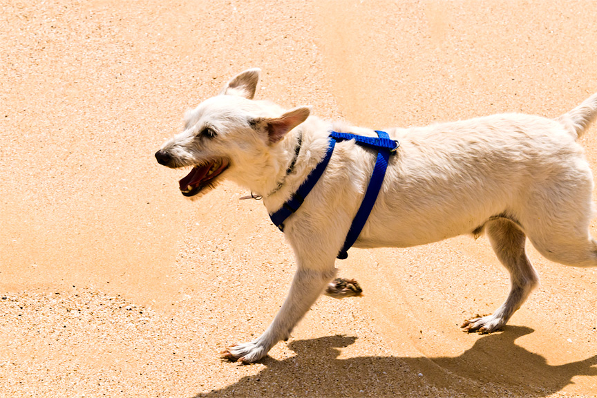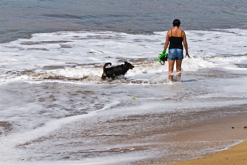South Kihei Road runs right along the ocean on the north part of town which makes easy access for a woman and her dog. Why is it that dogs everywhere seem to just love the ocean waves?