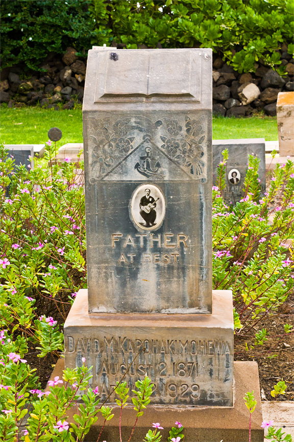As is the case with many of the older churches, Keawala`i has a small cemetery on their grounds. Here likes the remains of David M. Kapohakimohewa, born in 1871 and died in 1928. I was intrigued with the photo imprinted into the headstone — remarkable in its state of preservation after some 80 years (assuming that it was placed here in 1929).