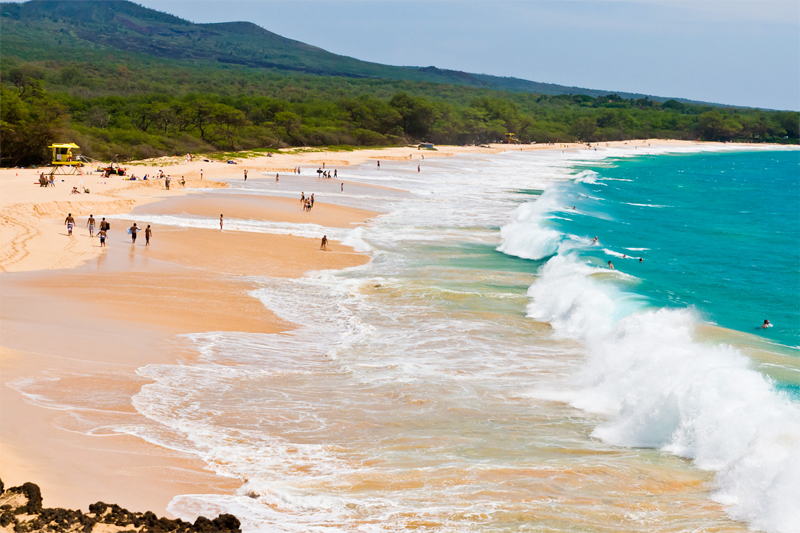 At the north of Big Beach is Pu`u Olai, a dormant volcanic cinder cone which rises some 360 feet above the ocean. There is a steep, rugged path from the beach over to Pu`u Olai Beach which many call "Little Beach". It is one of the few Hawai`ian beaches where the authorities tolerate nude sunbathing — sorry, no photos.