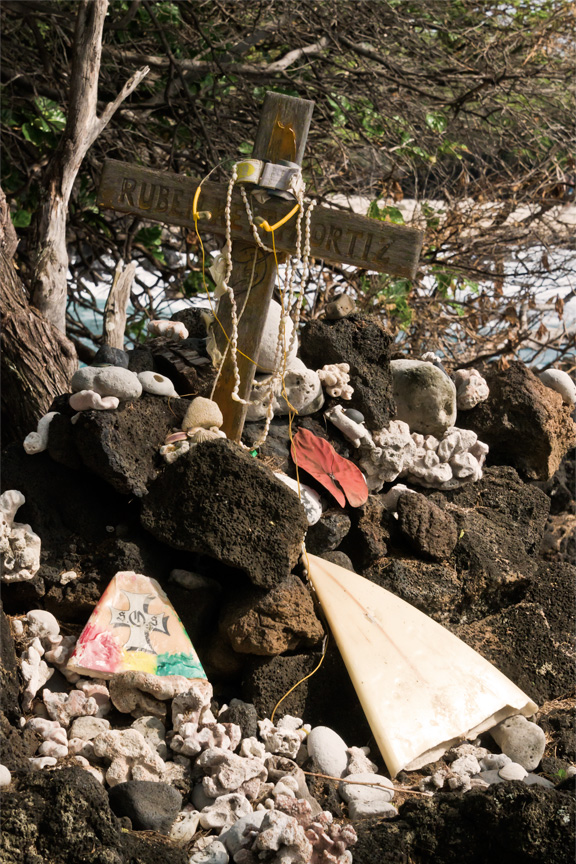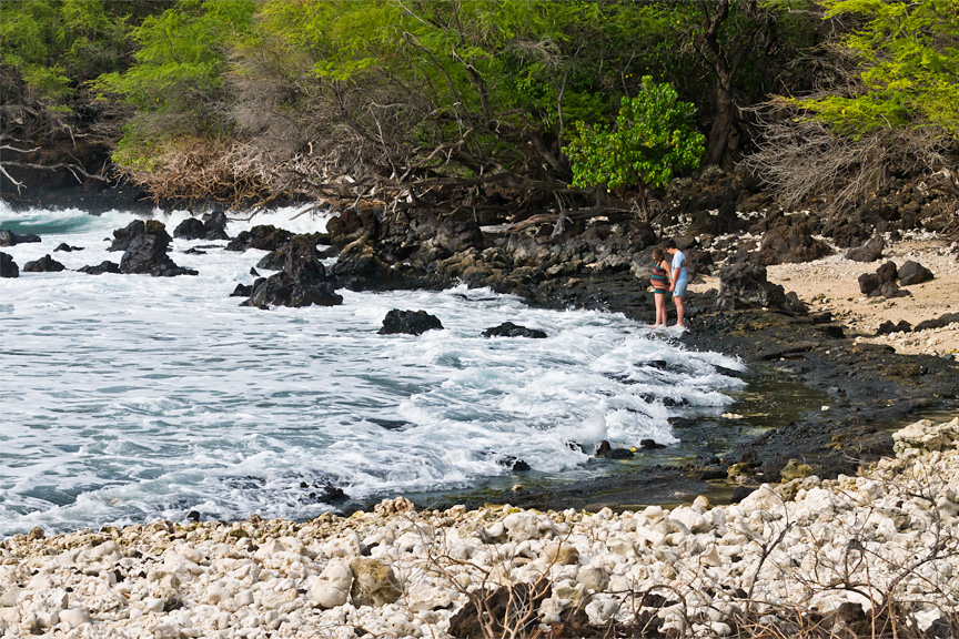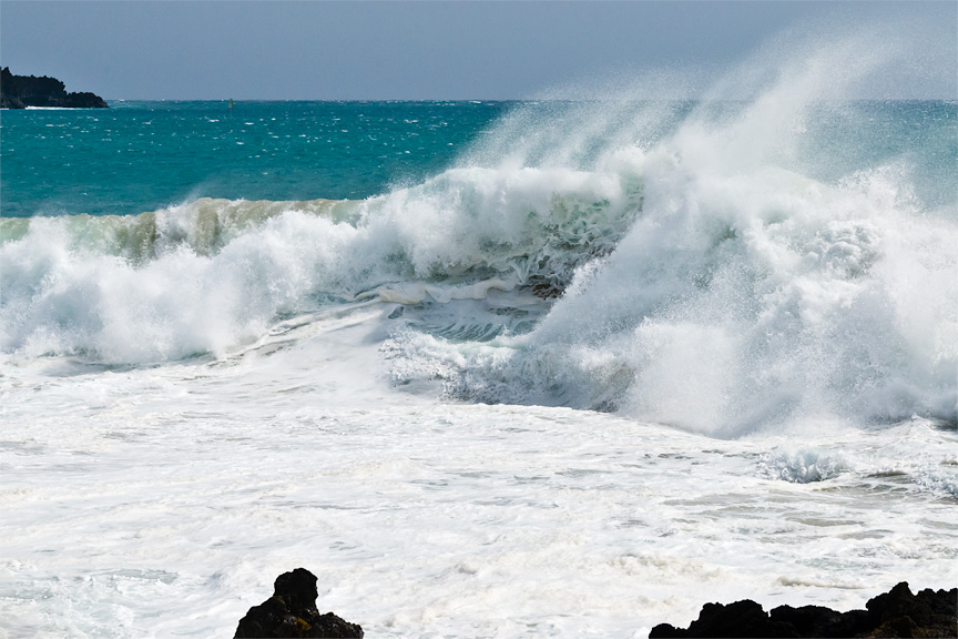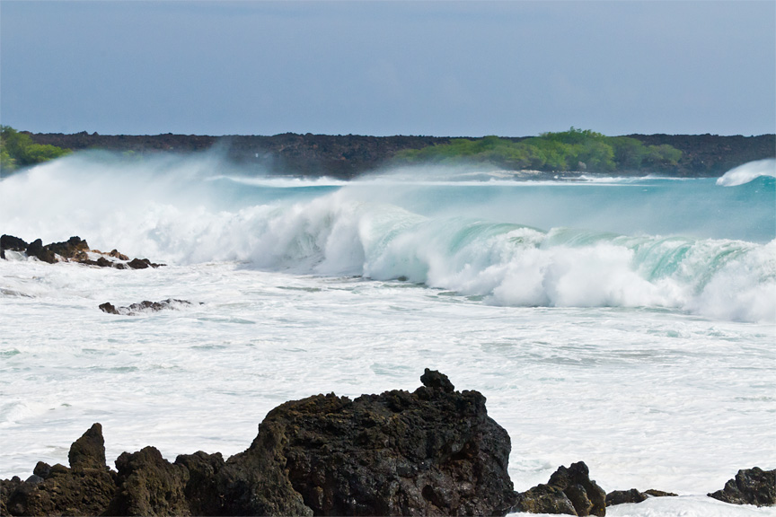 As I was wondering around, I ran into a local kid who was looking off into the distance where some brave, adventurous surfers were tackling the gigantic waves at the far end of La Perouse Bay. He said that the path was in good shape and it is easy to walk all the way down there — but that there is no road. I asked him how the surfers got all the way down there and he told me they either walked the path or paddled. I decided to give it a go (walking the path, not surfing) since I have never been down there — nor have I ever seen anyone surfing such large waves on Maui. |