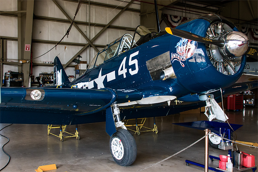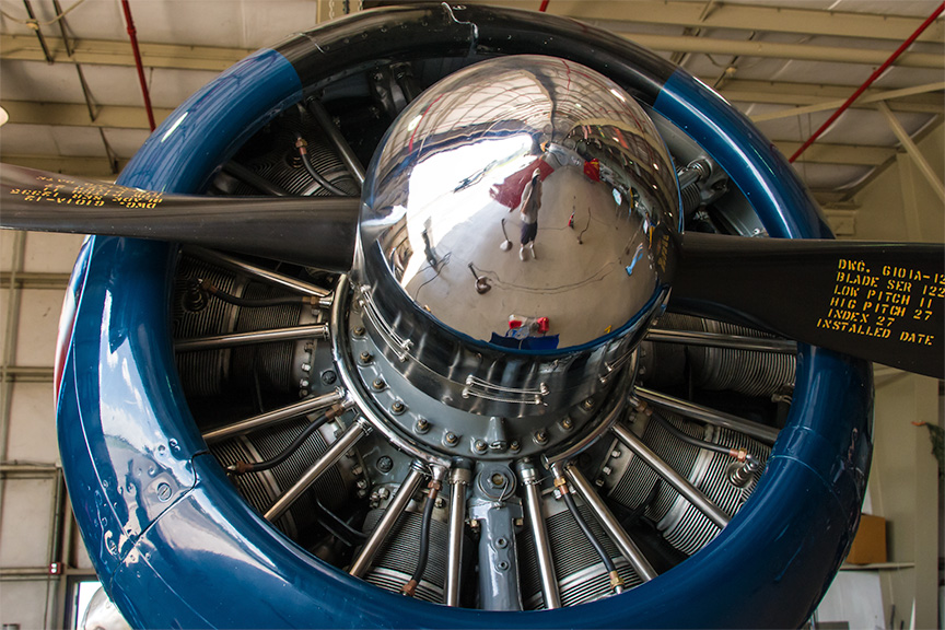 BTW, you don't have to look too closely to notice the photographer reflected in the well-polished propeller cone. |