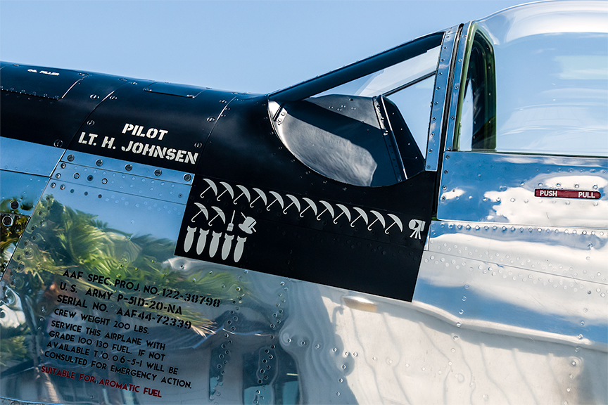 The second aircraft on display was a P-51 Mustang, a long-range, single-seat fighter and fighter-bomber. During WWII, Mustangs were responsible for downing 4,950 enemy aircraft, second only to the carrier-based Grumman F6F Hellcat.