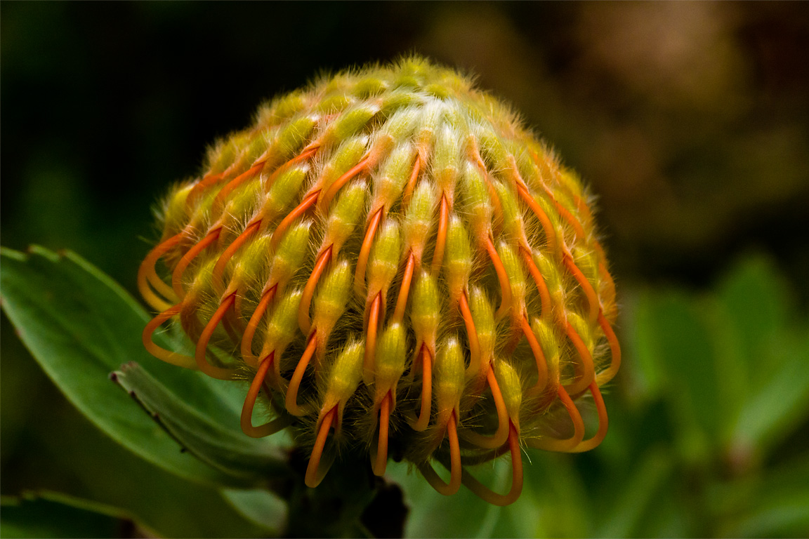 Come January, LAHP featured the plants of the Kula Botanical Garden. This image is a Pincushion Protea. I love the various species of Protea because they are so different from the flowers which are more commonly seen. Almost alien, you might say.