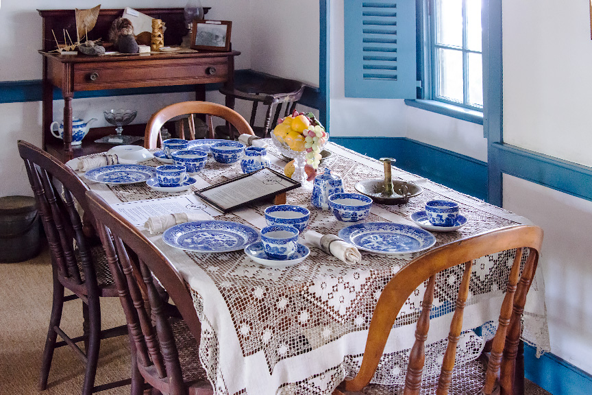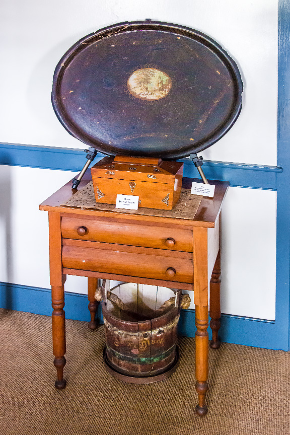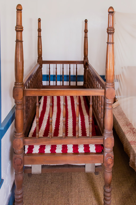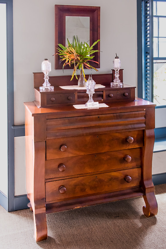Just off the main room is the master bedroom. Note the mosquito netting to protect the sleepers. An interesting side note — there were no mosquitoes in Hawai`i prior to 1826 — thus the natives previously had no need for protection against those biting buggers. They were unintentionally introduced by the European sailing ships which carried water in large barrels that hid mosquitoes. As one would expect, they jumped ship and found they loved Hawai`i immensely and quickly spread across the islands. Humans were not the only inhabitants of the islands impacted by mosquitoes. I found the following information from the University of Hawai`i — "Early naturalists in the islands reported the first large scale epidemics in native bird populations in the late 1800’s, but it wasn’t until the early part of the 20th century that we think that the second pathogen, a species of avian malaria (Plasmodium relictum) reached Hawaii. Similar to human malaria in many aspects of its life cycle, avian malaria probably reached the islands in imported cage birds that were released to replace declining native birds. With mosquito vectors already in place, it is likely that avian malaria spread quickly into native birds. With no prior exposure or natural immunity to this disease in native species, we think that it probably swept through remaining lowland native bird populations, further hastening the extinction of several species and decline of many more. Only high on the volcanoes, where colder-temperatures limit the spread of mosquitoes, do native forest bird communities remain relatively intact".