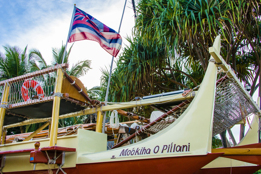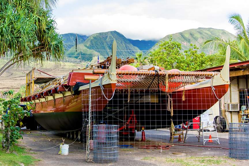 On my just-completed trip to Maui, I had the privilege to view and photograph the newest member of the Polynesian Oceangoing Canoe fraternity — Mo`okiha O Pi`ilani. You may recall that coincidentally, I happened to have previously photographed her smaller sister canoe, Mo`olele. Both were built by Hui O Wa’a Kaulua, Maui's Voyaging Society. You can revisit my previous LAHP story by clicking here.