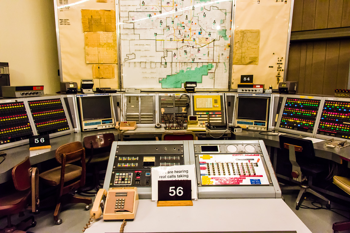 Here is the Phoenix Fire Department Alarm Room System from 1956 through 1982. There were a number of limitations of the previous systems and two Phoenix firefighters, Rae A. Echols and John Simmons designed and built this system from scratch, using a mixture of new equipment together with military surplus relays and vacuum tubes. Over the years, it was gradually upgraded until the computer revolution made this system obsolete. The replacement system is based on the "911" computer-assisted dispatch system installed in 1982 and which was superseded by a newer system in 1998. Note the sign behind the big "56" noting that the audio is from actual calls at the current central system. I hope you enjoyed our trip to the Hall of Flame Museum and perhaps might be enticed to visit on your own one of these days.