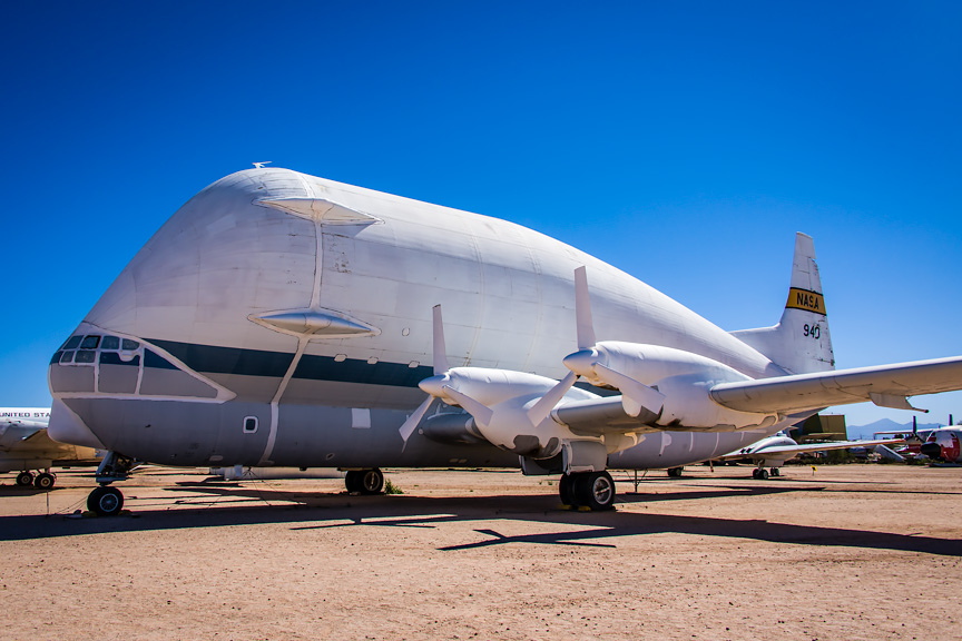 The majority of the airframe came from a former Pan American Airways airliner. However, the wings, engines and forward fuselage came from one of the Air Force's experimental turbo-prop powered YC-97J aircraft. This Super Guppy continued in use by NASA until 1991 when it was retired in favor of a younger Super Guppy. |