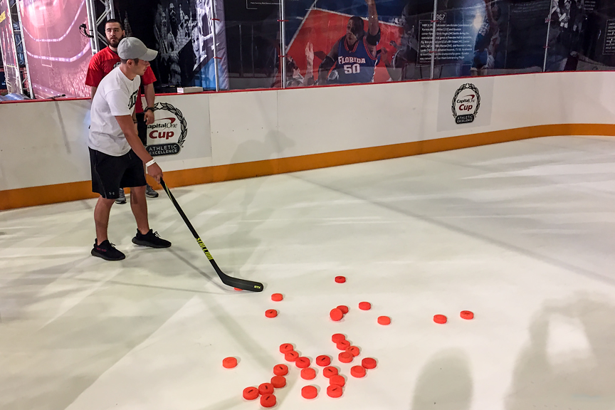 Next up, hockey. The objective was to hit the puck at a target — much easier said than done.