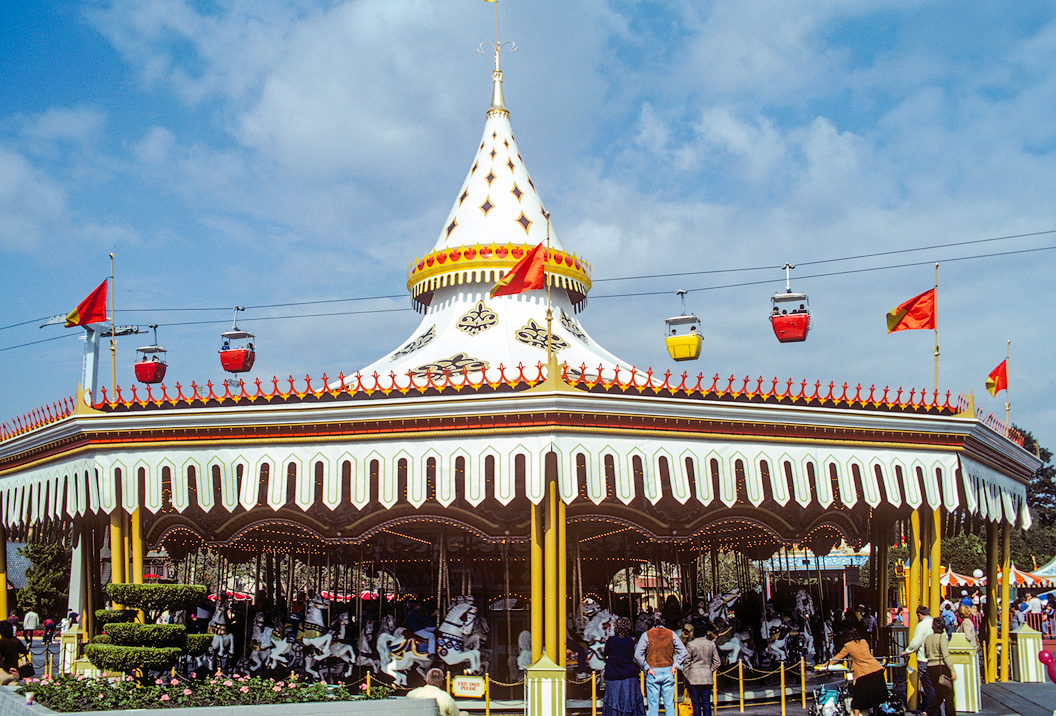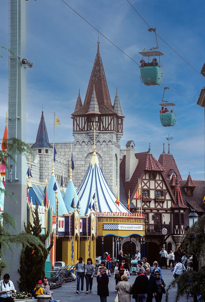 The Skyway connecting Tomorrowland and Fantasyland at Walt Disney World’s Magic Kingdom was one of the original attractions when the park opened on Friday, October 1, 1971. Technically, it was two attractions—Skyway to Fantasyland and Skyway to Tomorrowland. I loved this ride because of the views of the park from above — and the shortcut it provided between those two lands. It has been retired and very few signs of it remain.