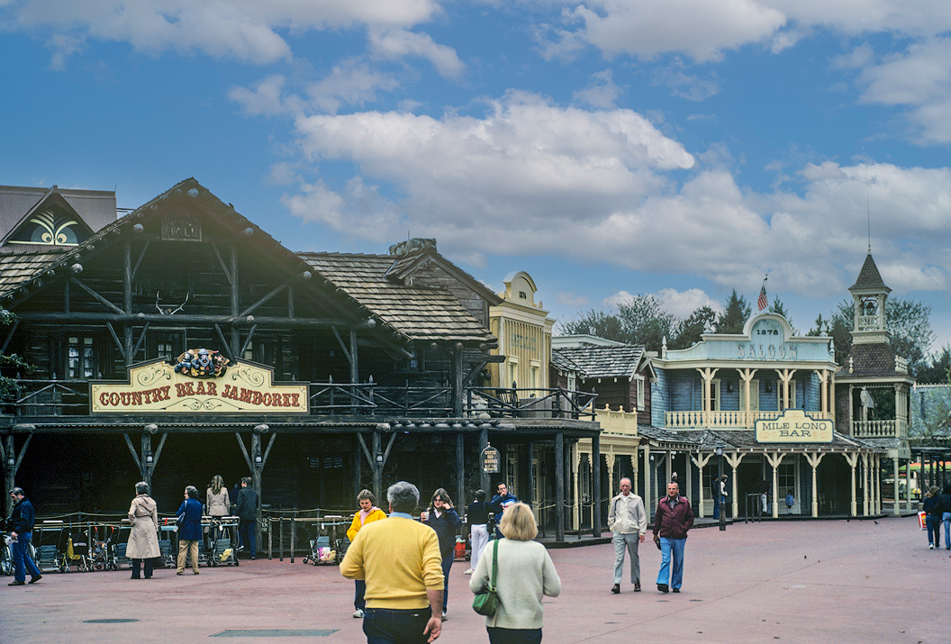 Country Bear Jamboree was a stage show featuring audio-animatronic figures. Most of the characters are bears who perform country music. Characters rise up to the stage on platforms, descend from the ceiling, and appear from behind the curtains. The audience includes audio-animatronic animal heads mounted on the walls who interact with characters on stage. I always enjoyed the bears although fatigue often pushed me to doze off during their performance. This was one of the original Magic Kingdom attractions and has been performing daily at Magic Kingdom park ever since.