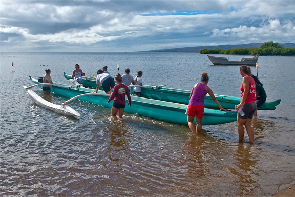 However, as I watched the girls paddling in unison I was again pulled into an older time when Hawai`ians used canoes for transportation around and between the islands — plus for fishing. This is another facet of the rebirth of the Hawai`ian culture. It is good to see it flourish. |