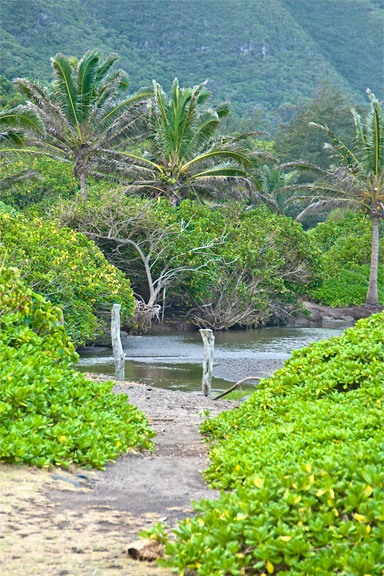 I am told that some 60 ancient fish ponds still exist along the southern coast of Moloka`i — the oldest dating back to the 13th century. They consist of walls built from lava rock and coral. I am also told that there was not much lava rock in this area and it had to be hand carried from the north side of the island. The fish ponds were built to keep fish that either entered through a sluice gate and grew too large to escape — or fish that were caught with nets during times of plenty and placed in the fish pond and raised until needed. According to some sources, the fish were eaten only by the ali`i (chiefs). According to another source, some two million pounds of fish were harvested each year from Hawai`ian fish ponds. That causes me, with no expertise, to wonder if perhaps the ali`i had first crack at this bounty but commoners were "permitted" some share. This source of protein was so beneficial that steps are currently underway to restore the fish ponds and return them to productivity. Good luck my friends. |