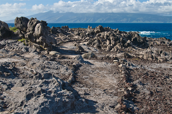 Just beyond the weather sign is one of the most picturesque spots in the islands. I doubt you need my narrative other than to note that the island in the distance is Moloka`i — with Maunaloa (also part of Moloka`i) just barely visible on the left horizon. Why would anyone want to be anywhere else? |