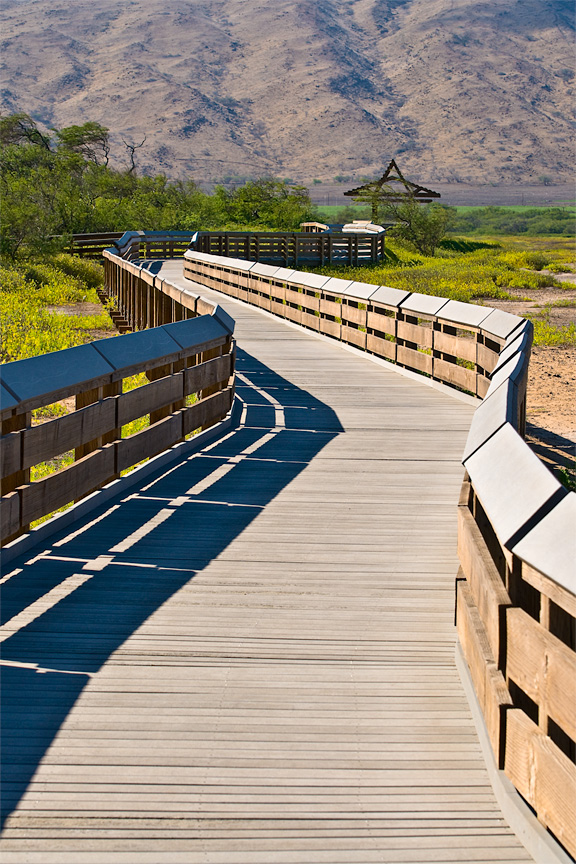 On my last several trips to Maui, I have been watching the progress at the Kealia Pond National Wildlife Refuge which is located between Kihei and Ma`alaea. This area is a coastal salt marsh encompassing almost 700 acres. It was formally designated as a wildlife refuge in 1953 and is home to more than 30 species of waterfowl, shorebirds and migratory ducks. The bridge in the photo is North Kihei Road, which runs through the middle of the refuge. ![]() |
