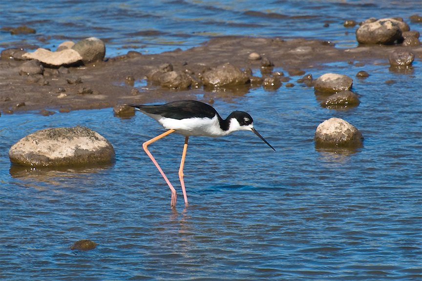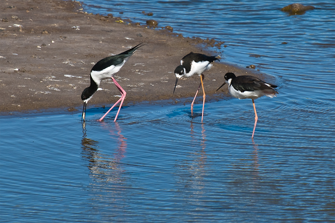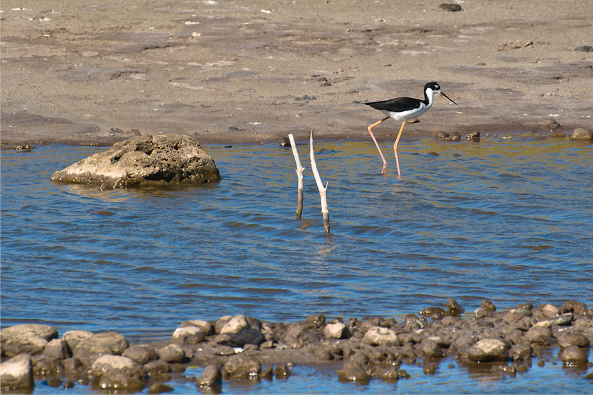 Then I photographed one of his friends capturing a small fish in the shallows. It was only after I started working on the photos in Photoshop that I realized the same Stilt that was resting on one leg was watching his friend's success. Further, after examining additional photos, I came to the conclusion that this bird appears to only have one leg. Life in nature can be very challenging. ![]() |
