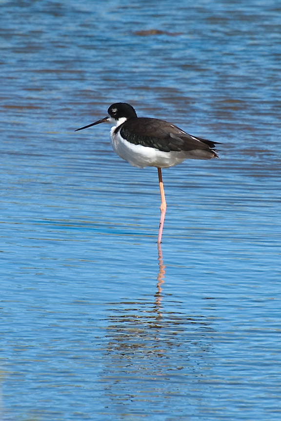 And here is one of the avian residents of the refuge, a Hawai`ian Stilt, which is an endangered species known in Hawai`ian as the Ae`o. |
