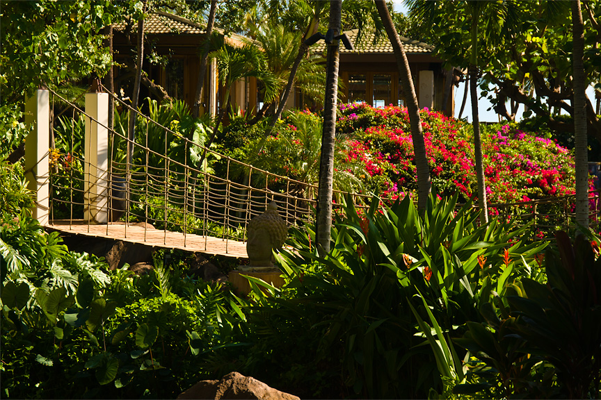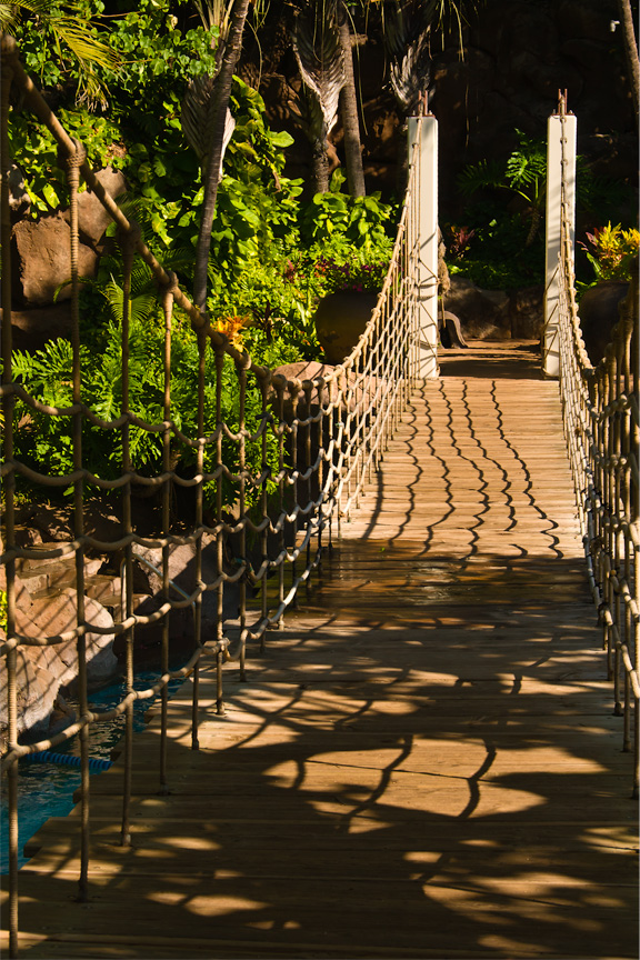 Near the water slide is a suspension bridge. It moves up & down and side to side when you walk over it. I have always wondered how many guests who might have had one cocktail too many found the bridge too unsteady to cross. And how many such guests found the water below. |