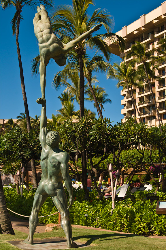 Near the beach, we find an interesting statue. I have to admit that it does not look like Asian art — more like Cirque de Soleil. |