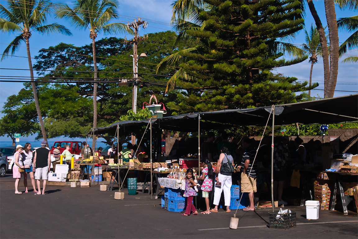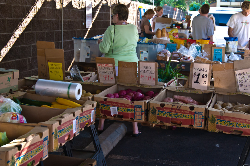 For us old timers, the image below is what we think of as the Farmer's Market Maui. There is still good reason (beyond nostalgia) to get there early when the tents are still up. Some of the produce is so popular that little will be left for sale in the store. But do not worry, the stores have a wider selection of produce and related merchandise.
