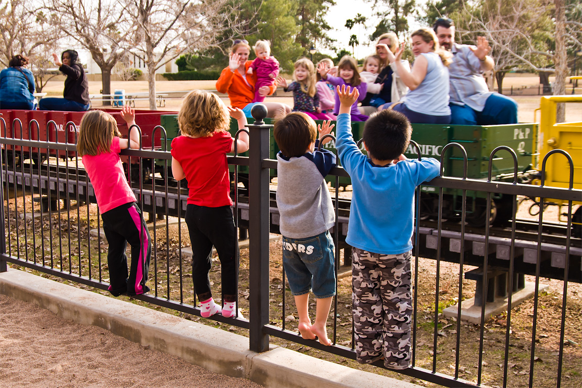 In addition to the carousel and the train, there is a huge playground with age-appropriate equipment so that the young ones and the older kids are both satisfied. |