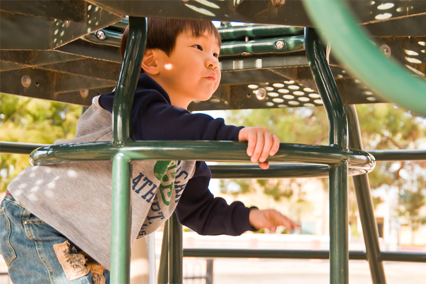 No playground would be complete without climbing bars that make parents and pseudo-parents worry about falls and possible injury. But just try to keep the kid off and you will probably get an injury yourself. |