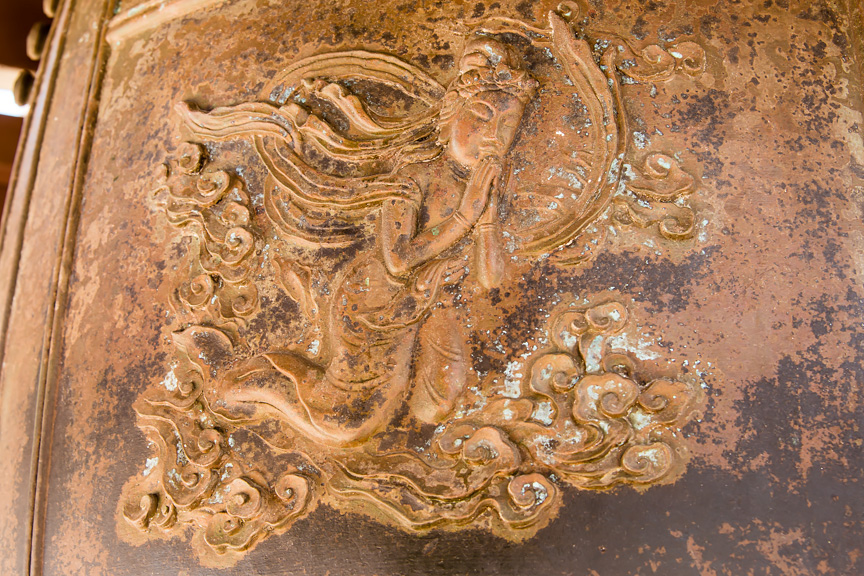 Made of bronze, the temple bell weighs approximately 3,000 pounds. On one side (the ocean side), are the words Imin Hyakunen no Kane (The Centennial Memorial Bell for the First Japanese Immigrants to Hawaii) cast in Chinese characters. On the other side are the characters Namu Amida Butsu, which means "Save me, oh, Amida Buddha."