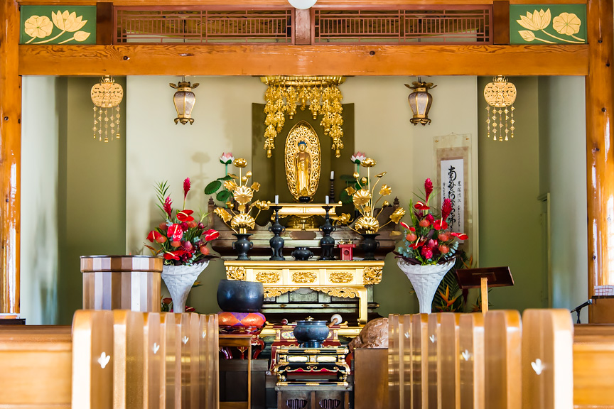 The present temple stands on the exact spot of the former temple building. The new structure was built in 1970 by traditional Japanese carpenters with the help of our members and friends. Lahaina Jodo Mission is a unique Buddhist temple with its architectural structure that blends Japanese and Western styles.