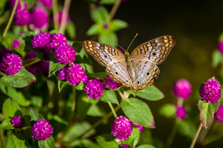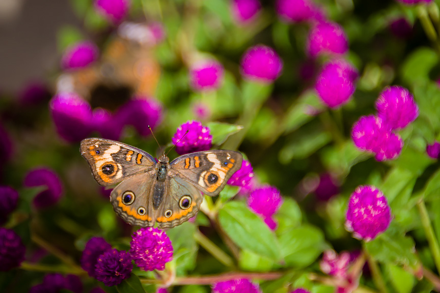 Continuing our tour through the Butterfly House, here is a common Buckeye butterfly. They have large eye-spots which tend to deter predators.