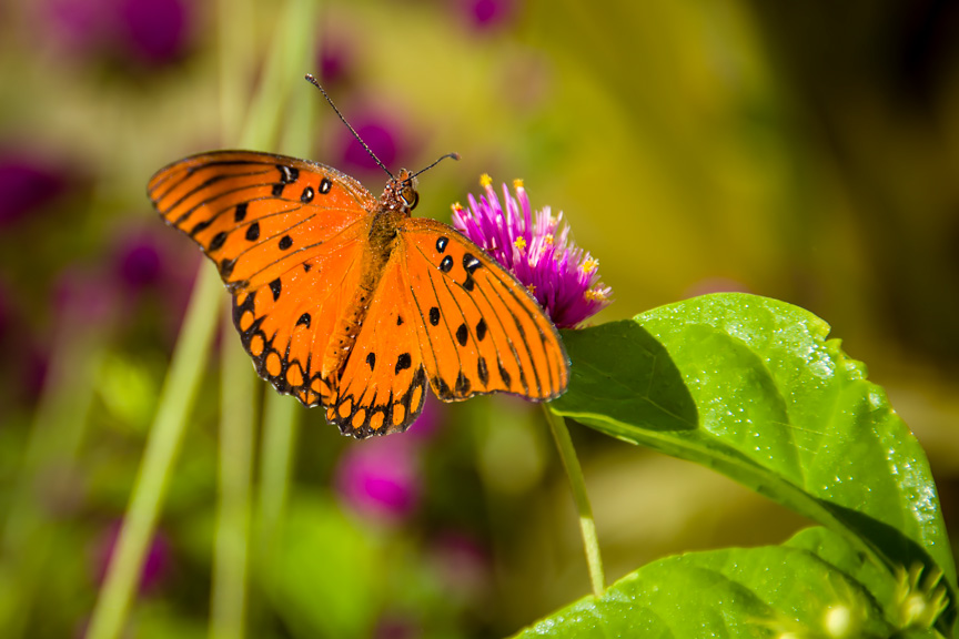 And next up is a striking Gulf Fritillary, one of my favorites. In their battle for survival, they release odorous chemicals in response to predator sightings. As a result, common predators learn to avoid this species.