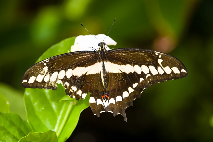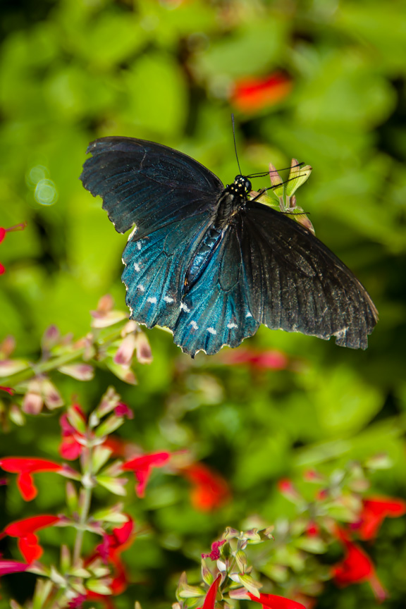 Here we see a lovely Pipevine Swallowtail, native to North and Central America. The caterpillars consume compatible plants of the genus Aristolochia. They are known for sequestering acids from the plants they feed on in order to defend themselves from predators by being poisonous when consumed.