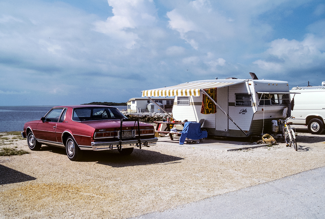 On this visit, almost the entire family went south to the Florida Keys. My parents had purchased a camper and arranged to keep it stored at a campground where, on short notice, they could bring it out of storage and hook it up to the facilities at a designated campsite. Because there were so many of us, they arranged to borrow another couple's camper (stored at the same campground) — so we all had a place to stay. ![]() |