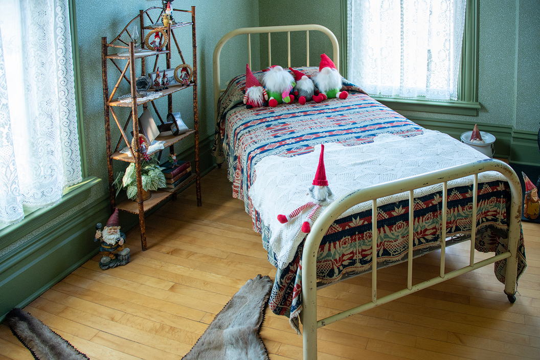 On the floor of the same bedroom was a bobcat skin with an elf sitting on its nose. I would have thought a bobcat skin might frighten a child who occupied this room. Maybe not. I'd love to know the rest of the story.