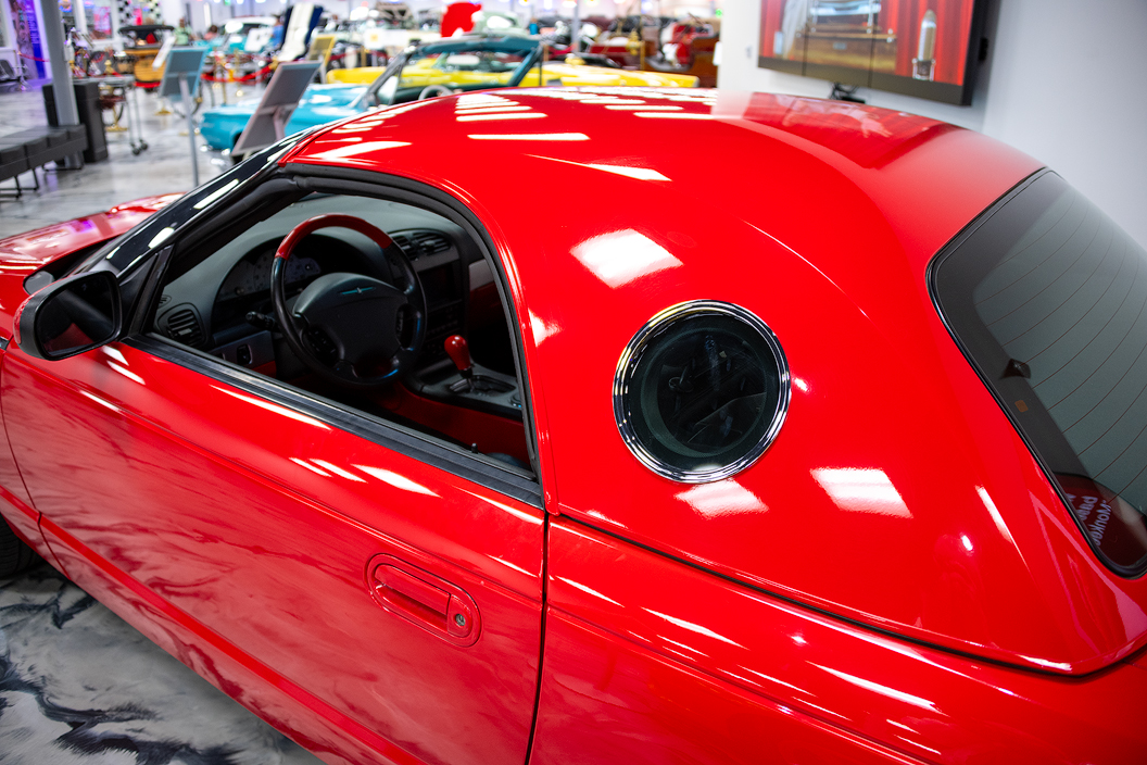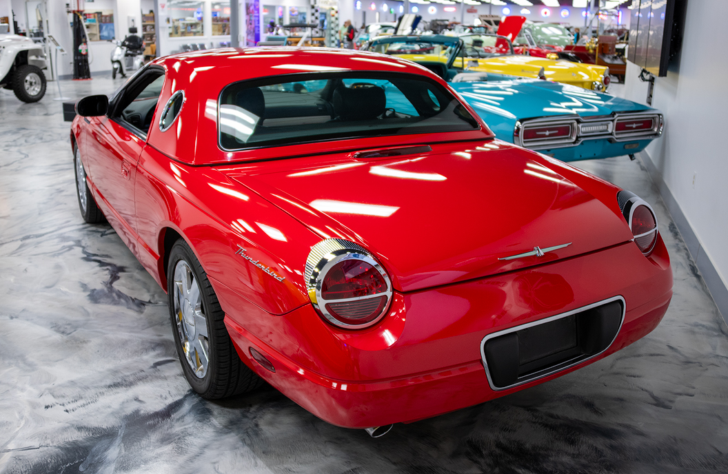 After a five-year hiatus between 1997 and 1992, Ford introduced the 2002 Thunderbird. Returning to the original formula for the Thunderbird, the latest version had a two-passenger convertible/removable hardtop configuration like the first-generation Thunderbird and styling strongly recalling the original. Note the circular window in this removable hardtop — kids my age said it was "So Cool!" It still is!