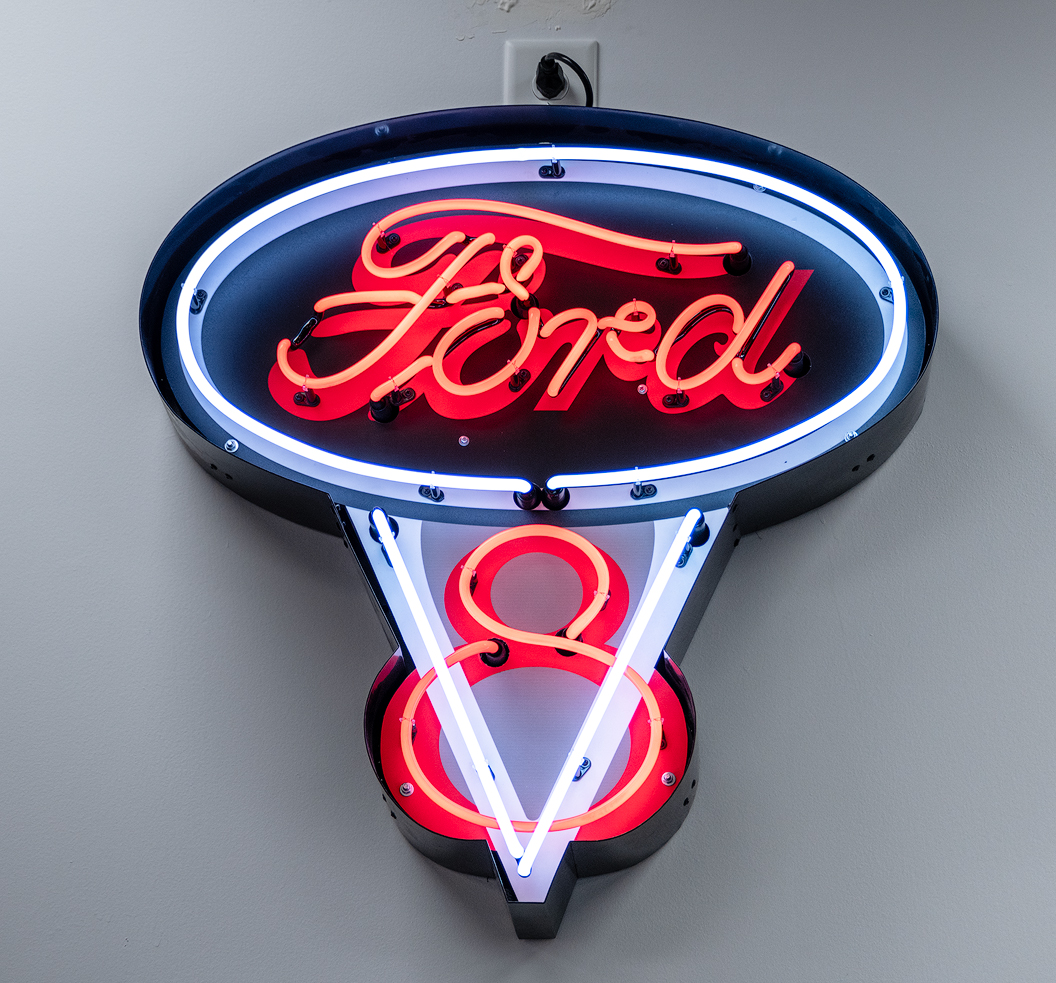 This Ford neon sign even incorporated an artistic V8 for the engines that took so many so fast.